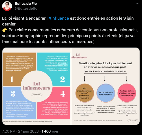 Flemme de lire, digérer et comprendre le texte de loi encadrant les métiers de l'influence commerciale ? Bulles de Flo vous a préparé un résumé en deux images ⤵️