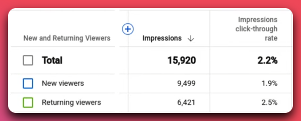 - Ce n'est pas tout côté stats puisque nous avons enfin un ajout intéressant : les impressions par nouveaux spectateurs ou spectateurs récurrents ⤵️