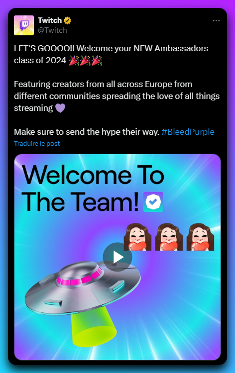 - Twitch a annoncé sa première fournée d'Ambassadeurs pour 2024 ! ⤵️