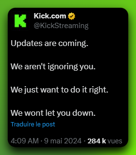 - Kick tente de rassurer ses utilisateurs après de nombreux mois sans mise à jour majeure ⤵️