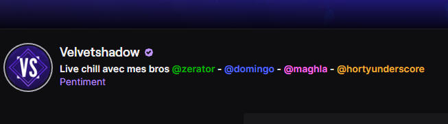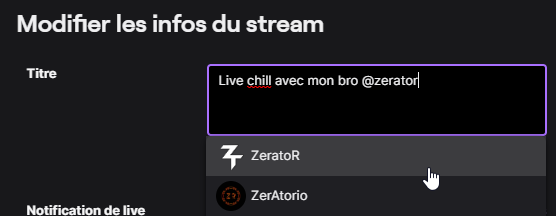 Petite nouveauté mais pas des moindres : il est désormais possible de taguer la chaîne d'un autre créateur dans le titre de sa diffusion en direct sur Twitch.
