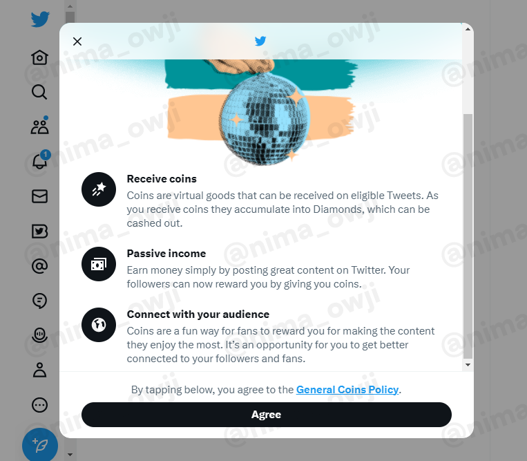 Ainsi, il serait possible d'acheter et de dépenser des Twitter Coins sur les contenus que vous appréciez afin de soutenir leurs créateurs, le réseau social prenant une commission au passage (montant non communiqué pour le moment). Les tweets afficheraient individuellement le nombre de Twitter Coins reçus, et un tableau afficherait les comptes des meilleurs soutiens.