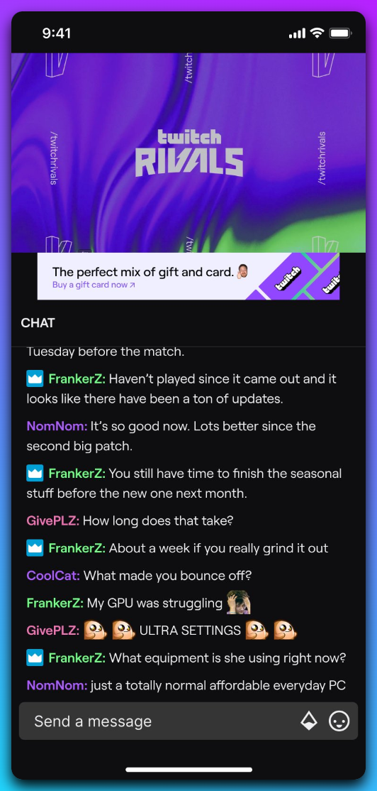 - Sur la raison de l'interdiction d'afficher le tchat d'une autre plateforme sur son overlay lorsque vous faites du multistream, le PDG argumente que ce n'est pas par inquiétude de la concurrence mais uniquement parce qu'ils n'ont pas trouvé de meilleure réponse pour régler une question simple : celle de la modération, dont les règles ne sont pas les mêmes partout. Or, certaines choses autorisées ailleurs dans le tchat ne le sont pas du tout sur Twitch...